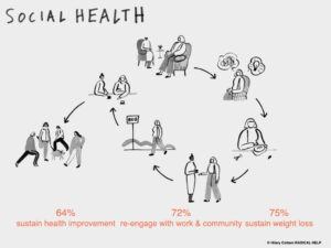 Aimée is what I call a relational worker – she listens and through this active process, she forms a bond. Almost everyone who took part in Wellogram knew what they should do – they don’t need education or leaflets because they are aware of the behaviour changes required. But practising change and sticking to it is hard – this is where the relationship comes in. Aimée knows – and this is the most challenging bit – how to support Kate to make her own changes. She is there as a trusted and steadfast support but she does not solve Kate’s problems for her.